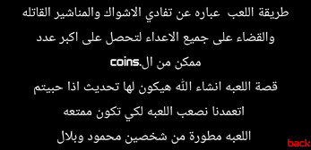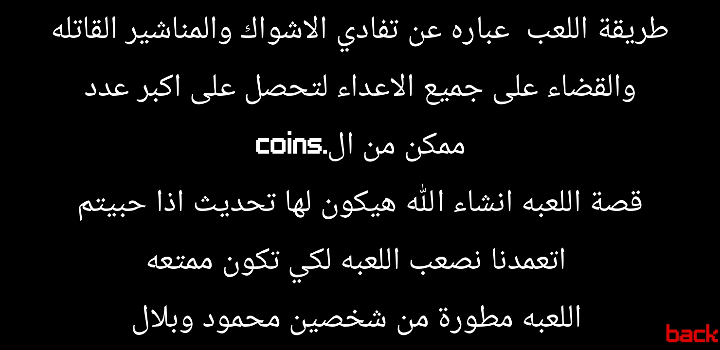 اللعبه مطوره من قبل شخصين بلال ومحمود انشاء الله العملات هنزل انشاء الله تحديث للعبه فيها متجر اسكنات ومهارات جديده ولا تنسو قول رأيكم في التعليقات وهل تستاهل تحديث ولا لأ